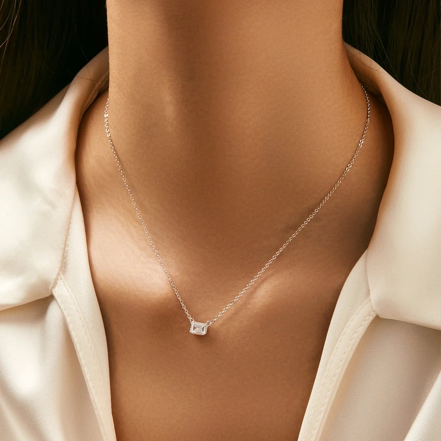 Capture the allure of timeless elegance with our Edge Radiance Necklace. Crafted from lustrous sterling silver, this captivating piece features a brilliant rectangular pendant that radiates with vibrant emerald hues. The striking design adds a touch of sophistication to any ensemble, making it a perfect statement piece for both casual and formal occasions. Embrace the beauty of this enchanting necklace and let it illuminate your style with every wear.
